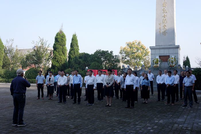 为深入开展党史学习教育,缅怀革命先烈,传承弘扬革命精神,汲取奋进力量,在中华人民共和国成立72周年和第八个烈士纪念日到来之际,9月30日上午,我校赴宿东革命烈士陵园开展“节日里的党史教育”活动 。校领导汪刘送、张莉、蔡之让、张英彦、杨维志及全校各二级单位党政主要负责人参加活动。