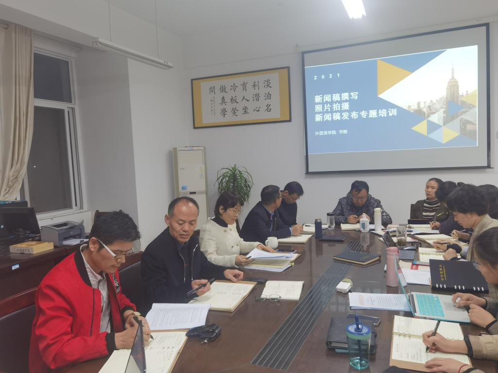 为抓好巡察整改任务落实,进一步规范做好学院新闻信息发布管理工作,展示学院的良好形象,为学院高质量发展营造良好的舆论氛围,10月18日下午,外国语学院组织召开了新闻信息发布管理工作培训会,学院党政班子成员、科级干部和教研室主任参加。会议由院党委副书记(临时负责)郝景东主持。