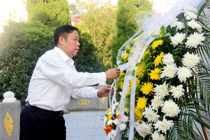 青松翠柏环抱中的烈士陵园,肃穆庄严。校党委书记汪刘送缓步走到革命烈士纪念塔前,悉心整理花篮缎带,带领全体党员领导干部向革命烈士三鞠躬,深切缅怀为中华民族解放事业献出宝贵生命的革命先烈